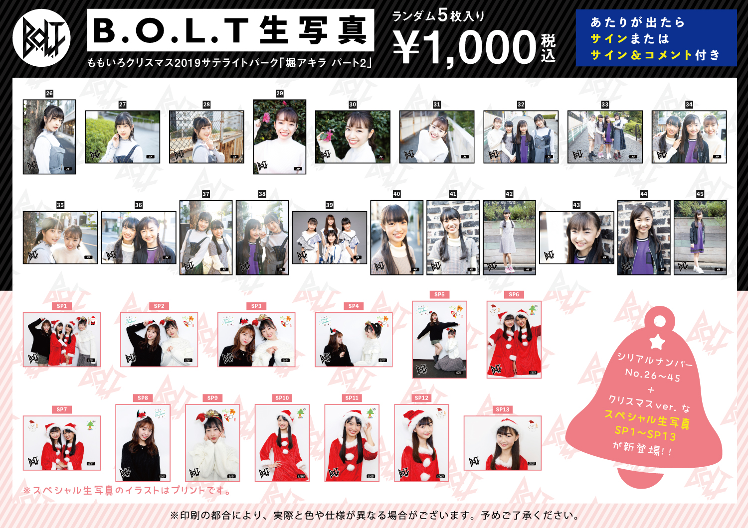2019/12/24(火)・25(水) B.O.L.T 「ももいろクリスマス2019」埼玉公演サテライトパーク「堀アキラ パート2」@さいたまスーパーアリーナコミュニティアリーナでは物販ブースにて下記商品を販売致します。