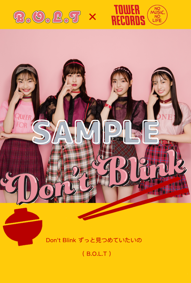 タワーレコード名古屋近鉄パッセ店・TOWERminiもりのみやキューズモール店にてB.O.L.T 1st single「Don’t Blink」のいずれかの形態をご購入につき、B.O.L.T×タワーレコード名古屋近鉄パッセ店・TOWERminiもりのみやキューズモール店ポストカードをプレゼント!