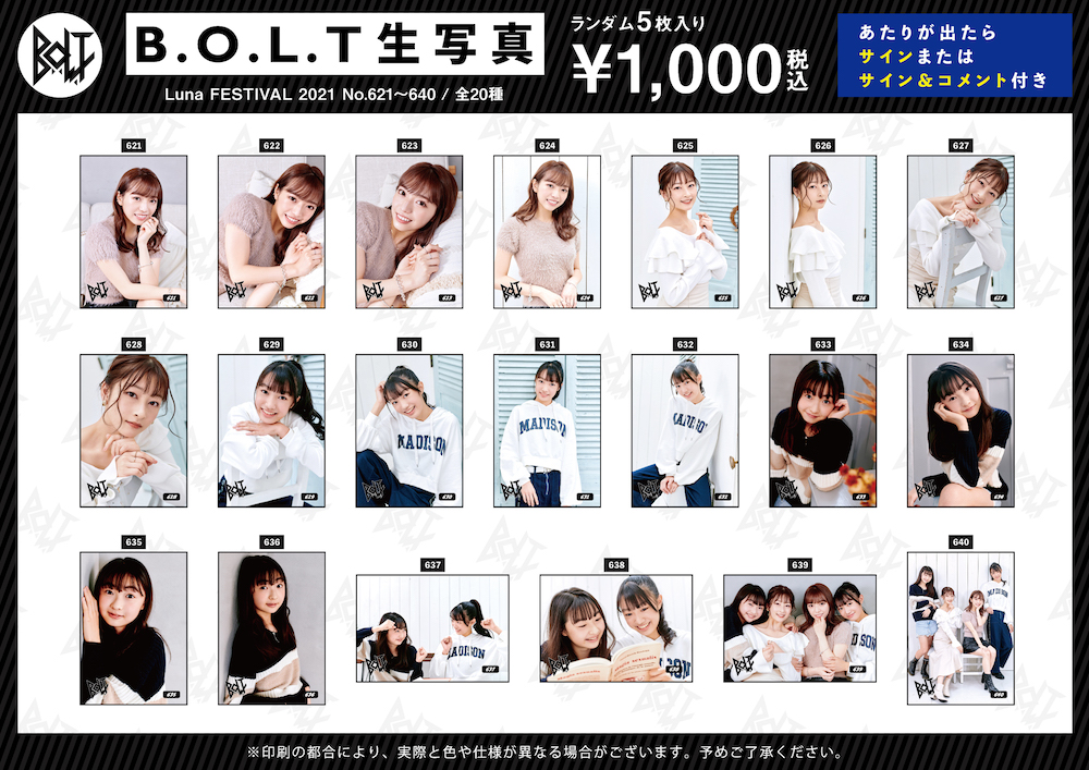 12/23(木) B.O.L.T 「Luna FESTIVAL 2021」@KANDA SQUARE HALLでは物販ブースにて下記商品を販売致します。