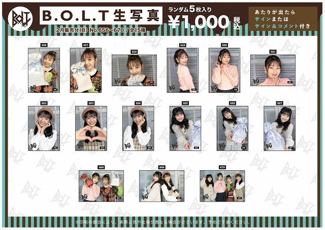■B.O.L.TバレンタインSP生写真【A】【B】セット 2,000円(税込)+ 梱包発送費