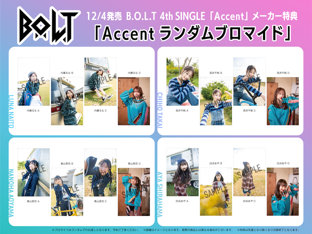 【12月14日(水)発売!!】B.O.L.T 4th SINGLE「Accent」メーカー特典が「Accentランダムブロマイド」に決定!!